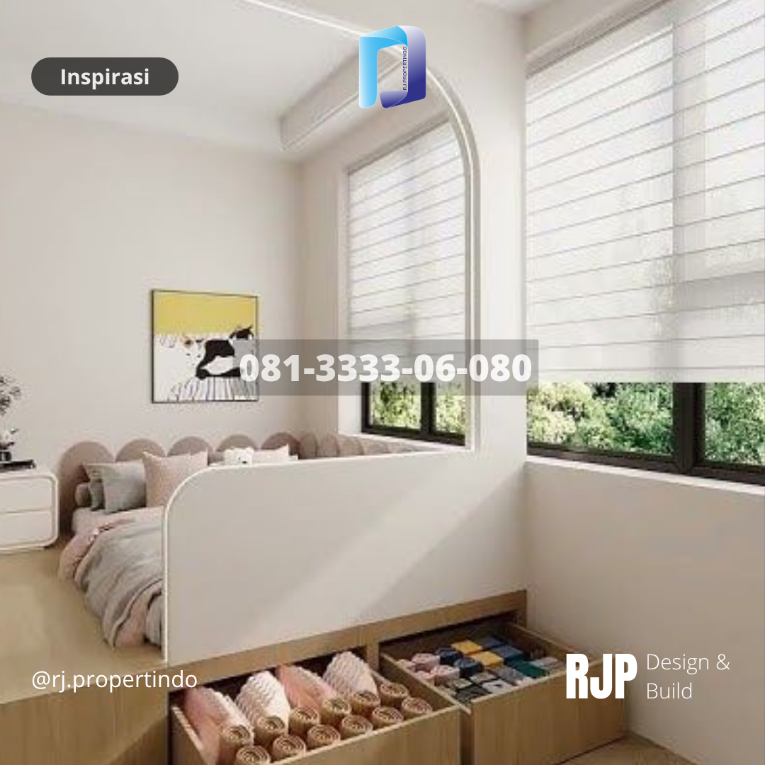 Desainer RJP Design & Build juga sering menggunakan material kayu alami dan tekstur lembut seperti kain linen untuk menambah kesan hangat dan organik. Pendekatan ini membuat kamar tidak hanya terlihat indah, tetapi juga terasa “hidup” dan menenangkan.